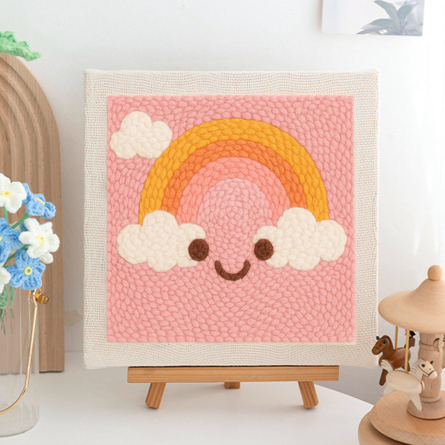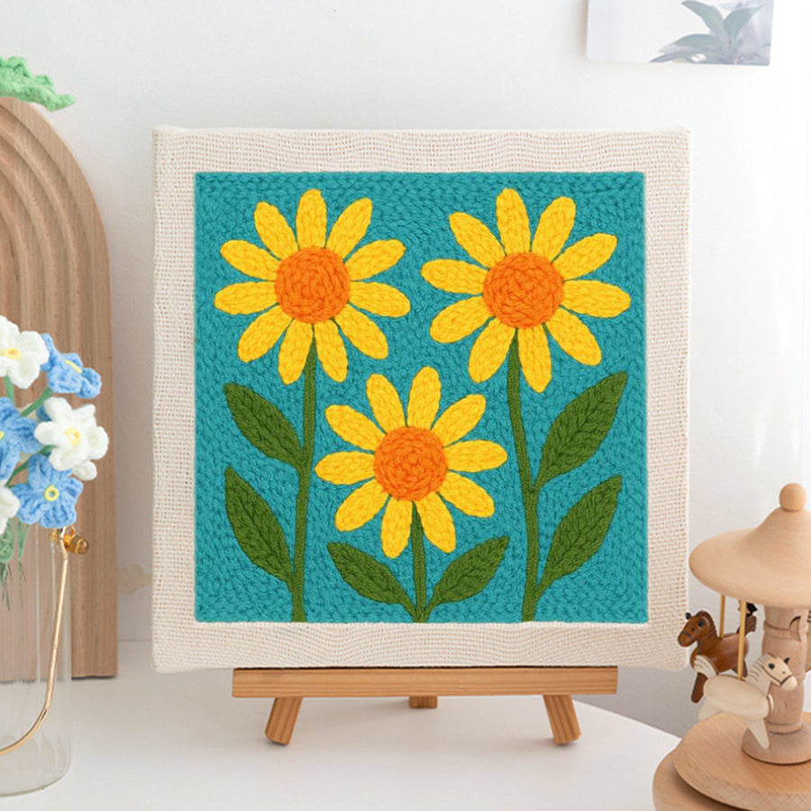 Start practising the embroidery process with a punch needle embroidery kit for beginners. The patterns feature simple floral and animal motifs, and cross stitch embroidery is accomplished through the repetitive action of punching coloured thread loops. Kit includes a grid, cotton thread, a needle tool, and easy-to-follow instructions. This covers what is needed for punched needle embroidery, providing examples of patterns suitable for beginners.
