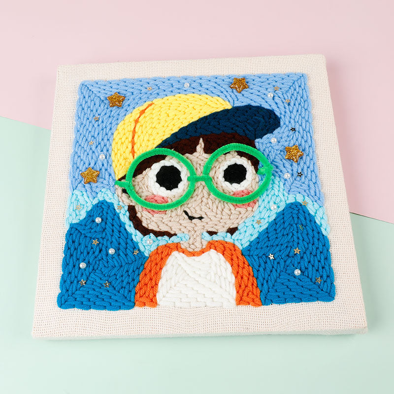 Boy With Glasses Punch Needle Embroidery Kits KID004