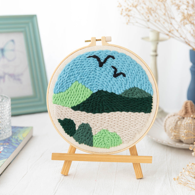 Mountain Road and Birds Punch Needle Embroidery Kits NAT028