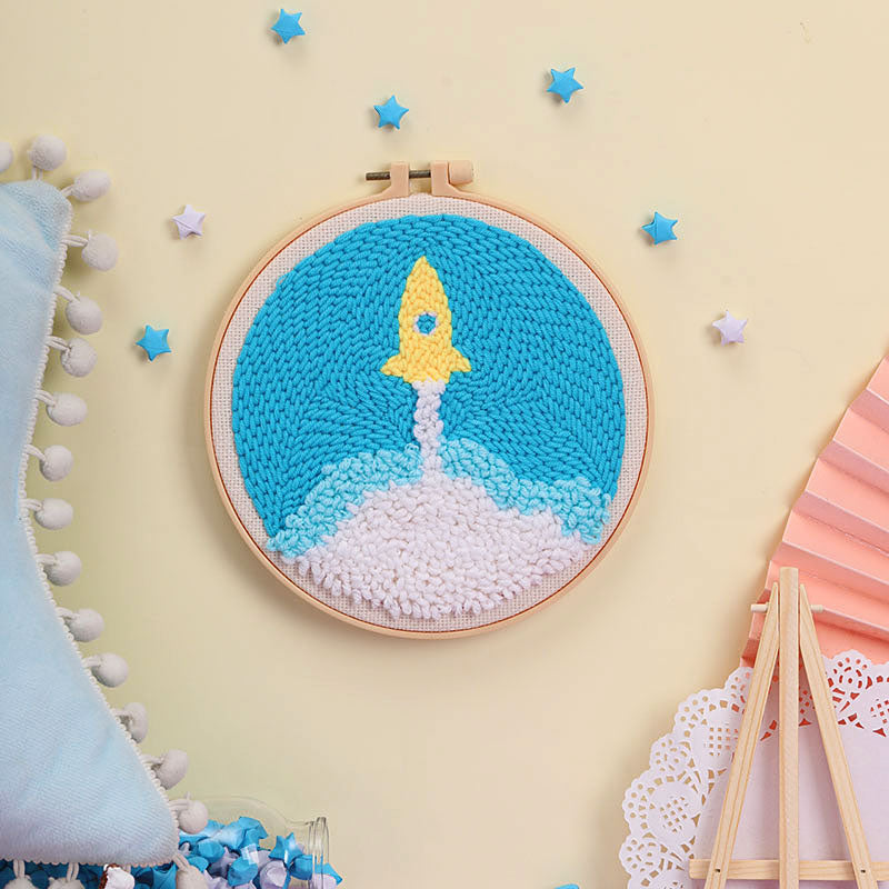 Rocket Lift Off Punch Needle Embroidery Kits POP016