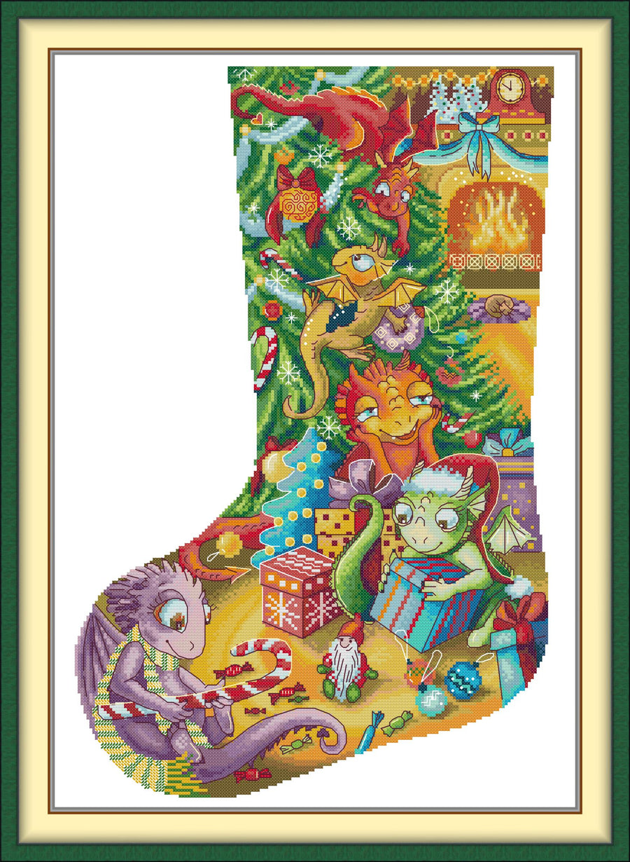 Dragon Opening Christmas Presents Cross Stitch Kits