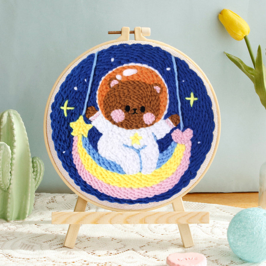 Astronaut Bear and Rainbow Punch Needle Embroidery Kits