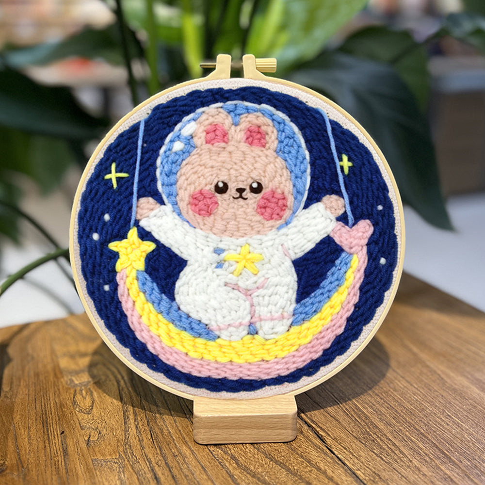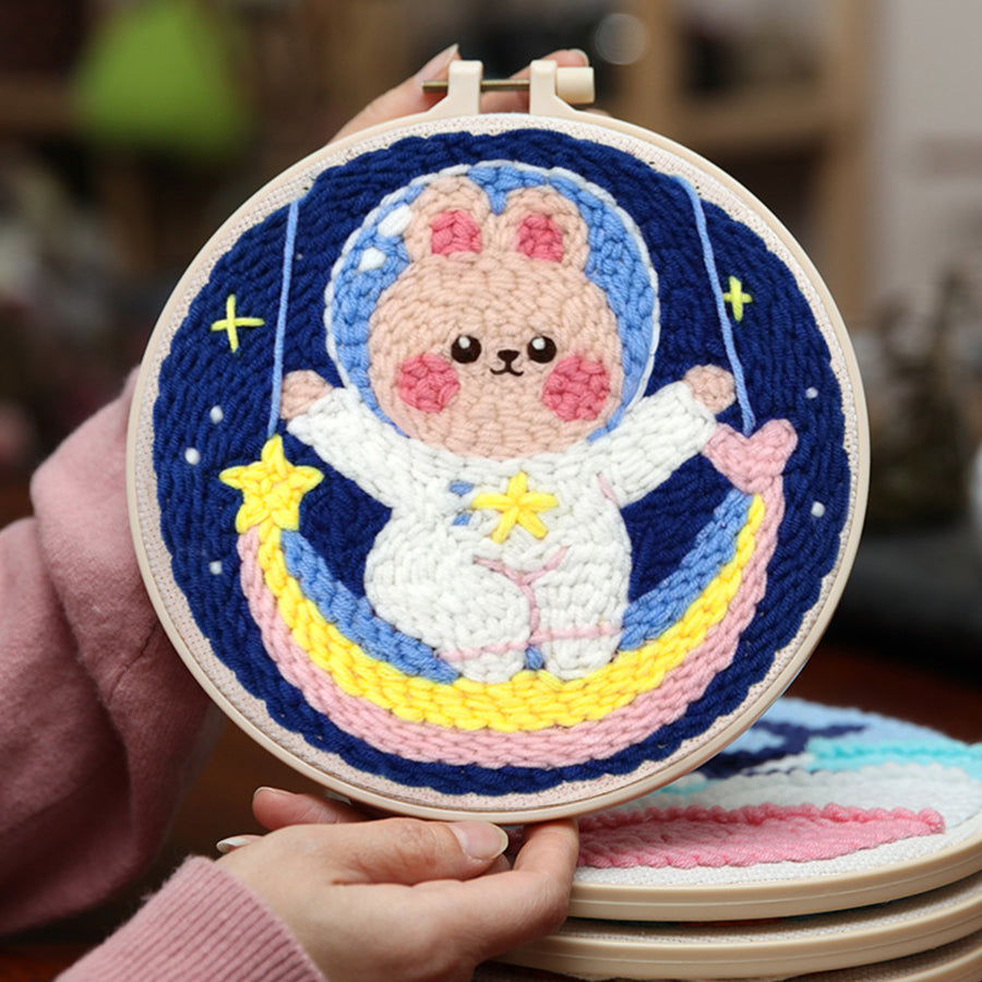 Bunny Astronaut and Rainbow Punch Needle Embroidery Kits