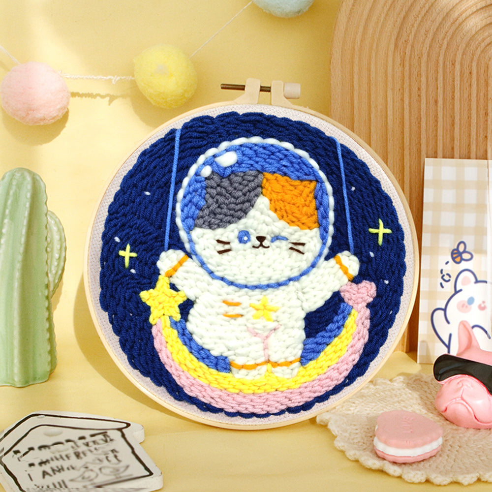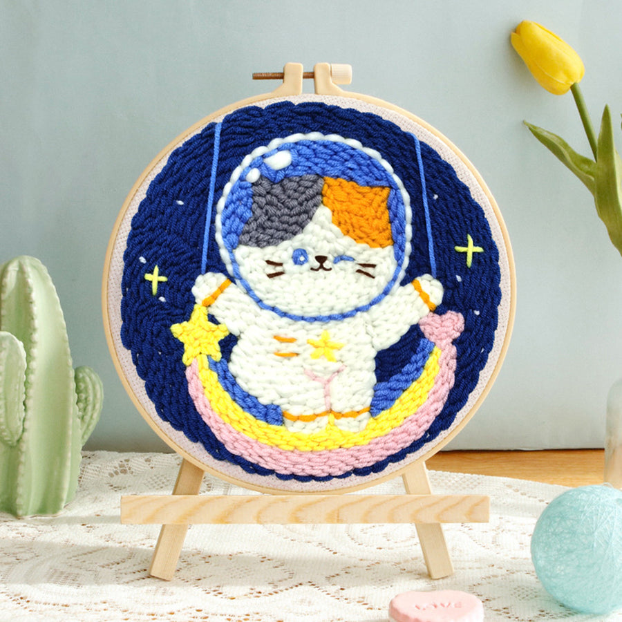 Kitten Astronaut and Rainbow Punch Needle Embroidery Kits