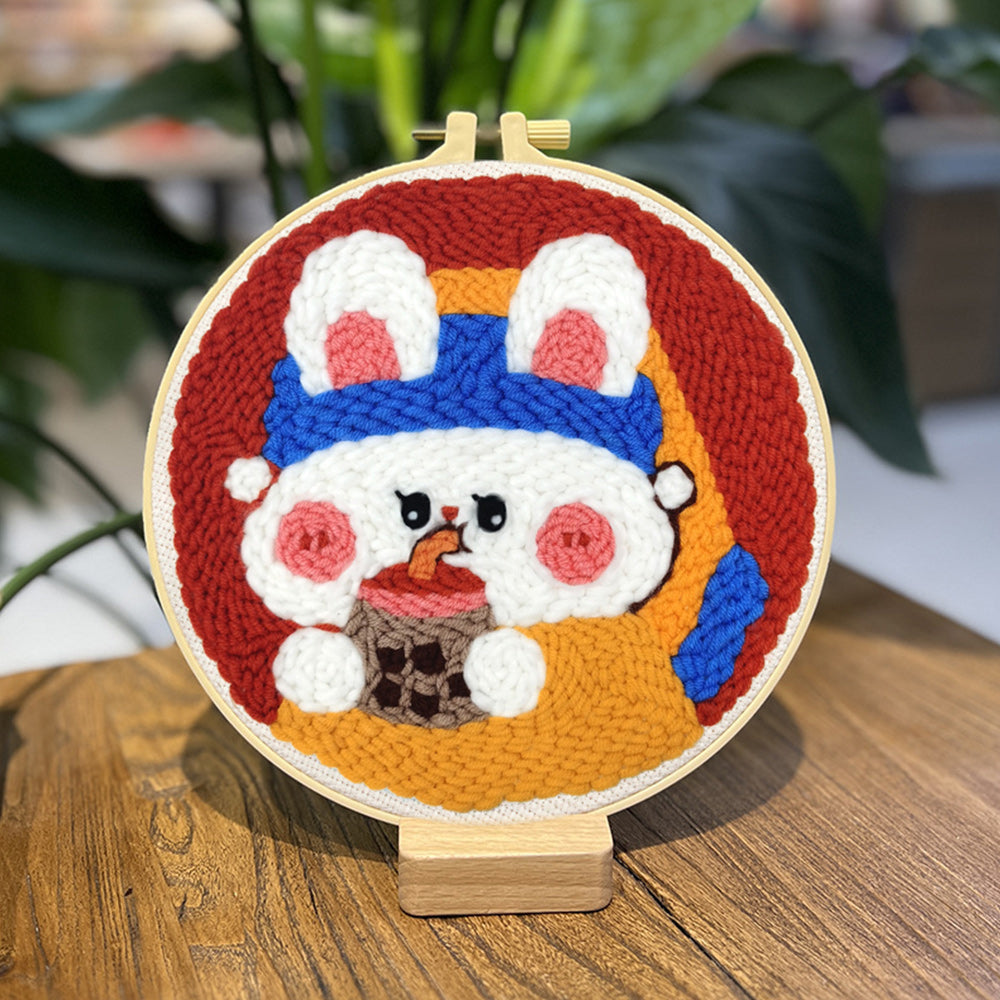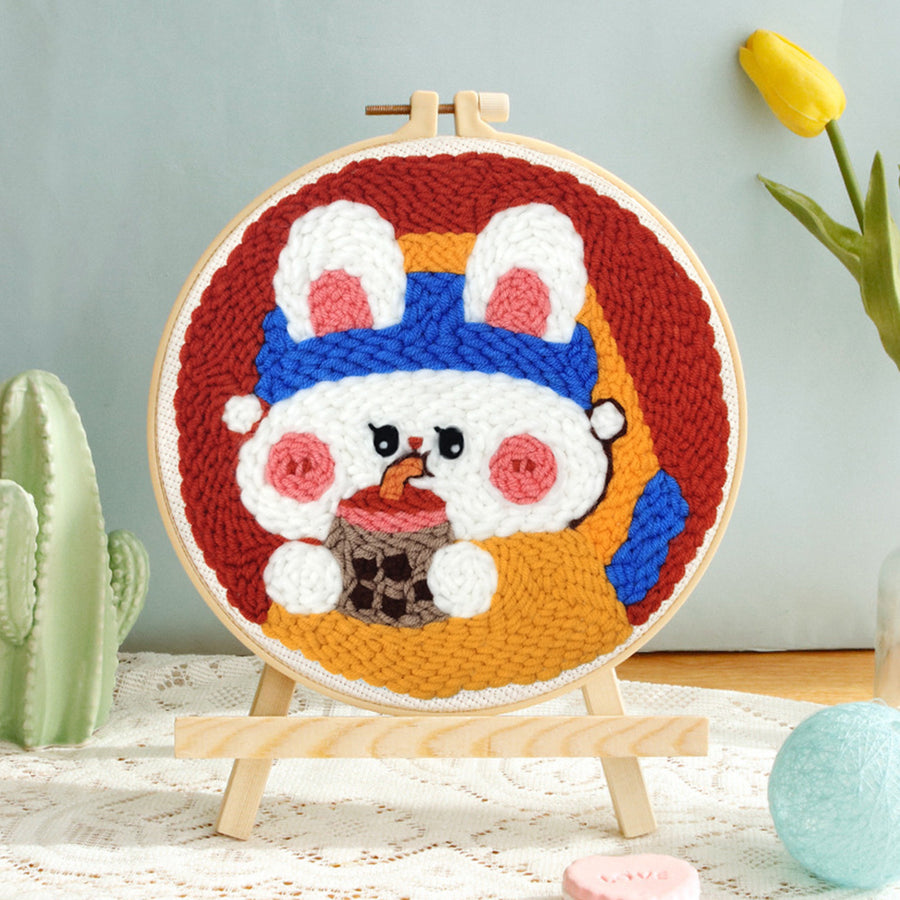 Milk Tea Pearl Rabbit Punch Needle Embroidery Kits