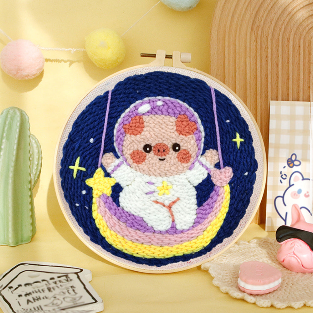 Pig Astronaut and Rainbow Punch Needle Embroidery Kits