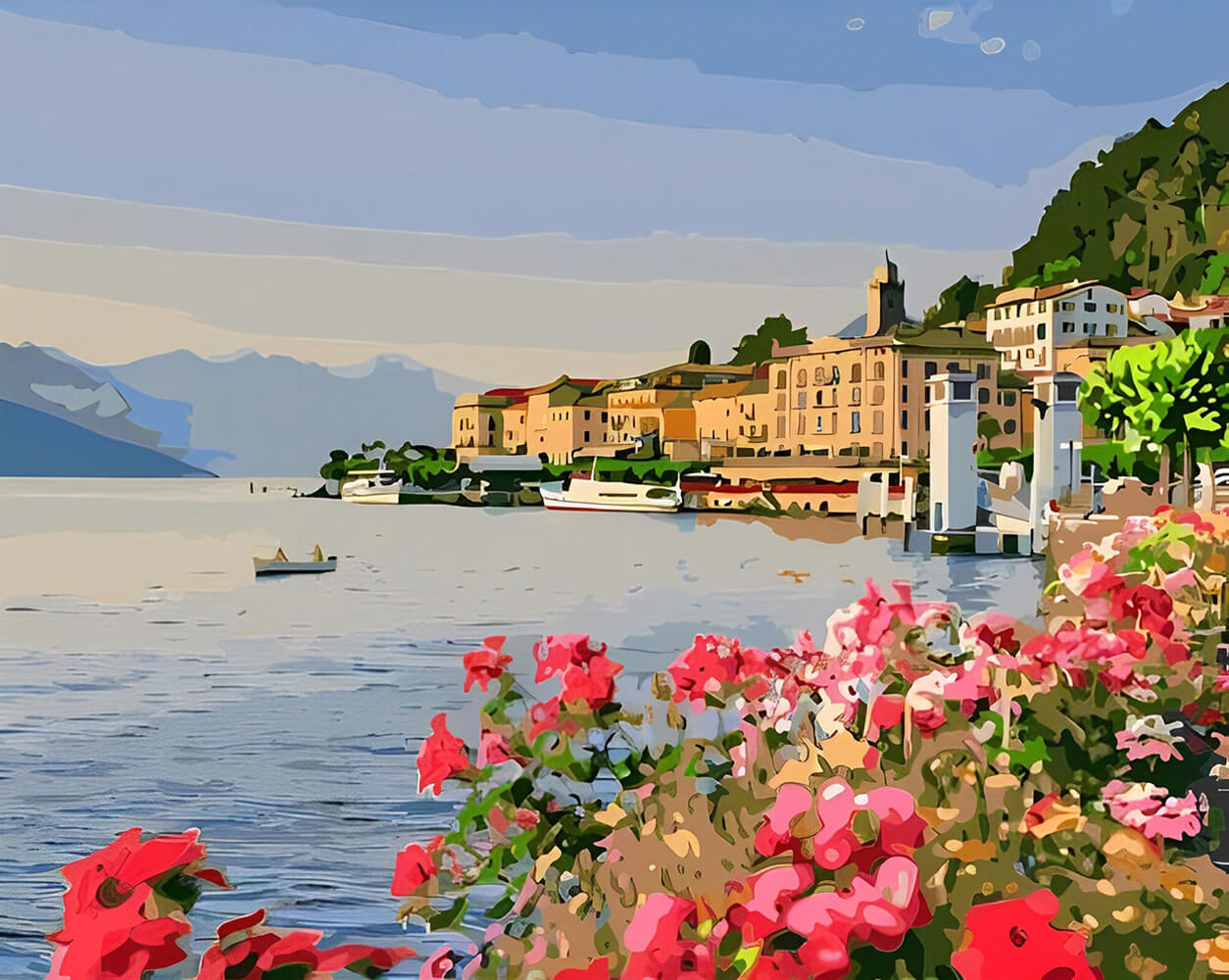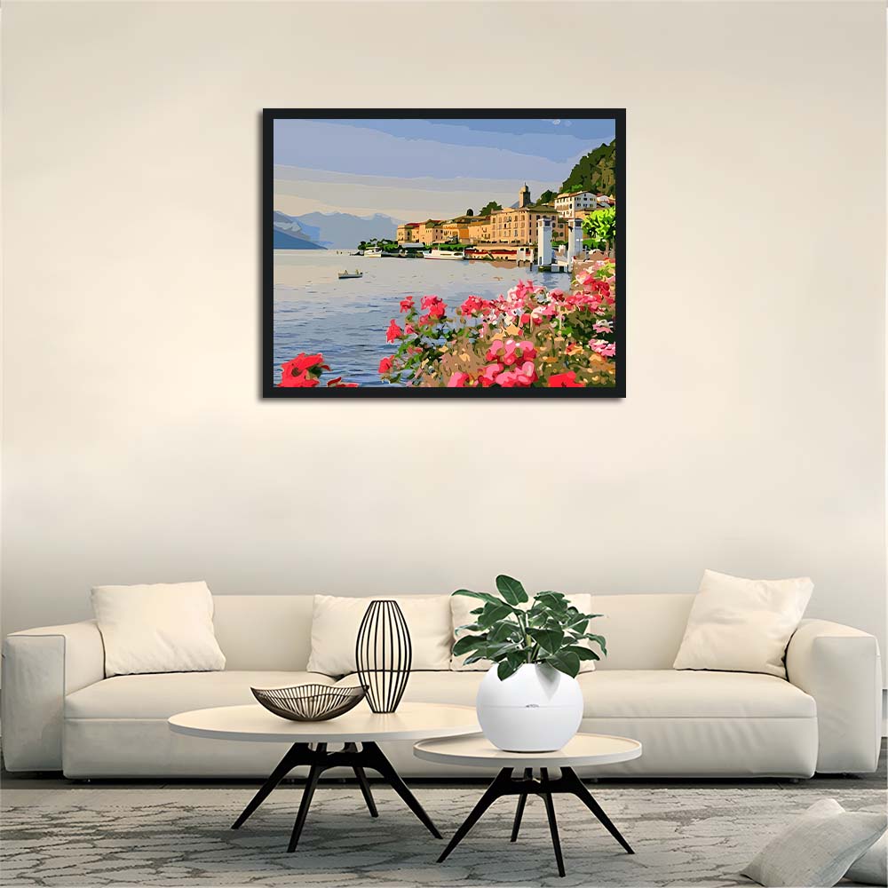 Pastel Buildings Line Blue Shore Cross Stitch Kits