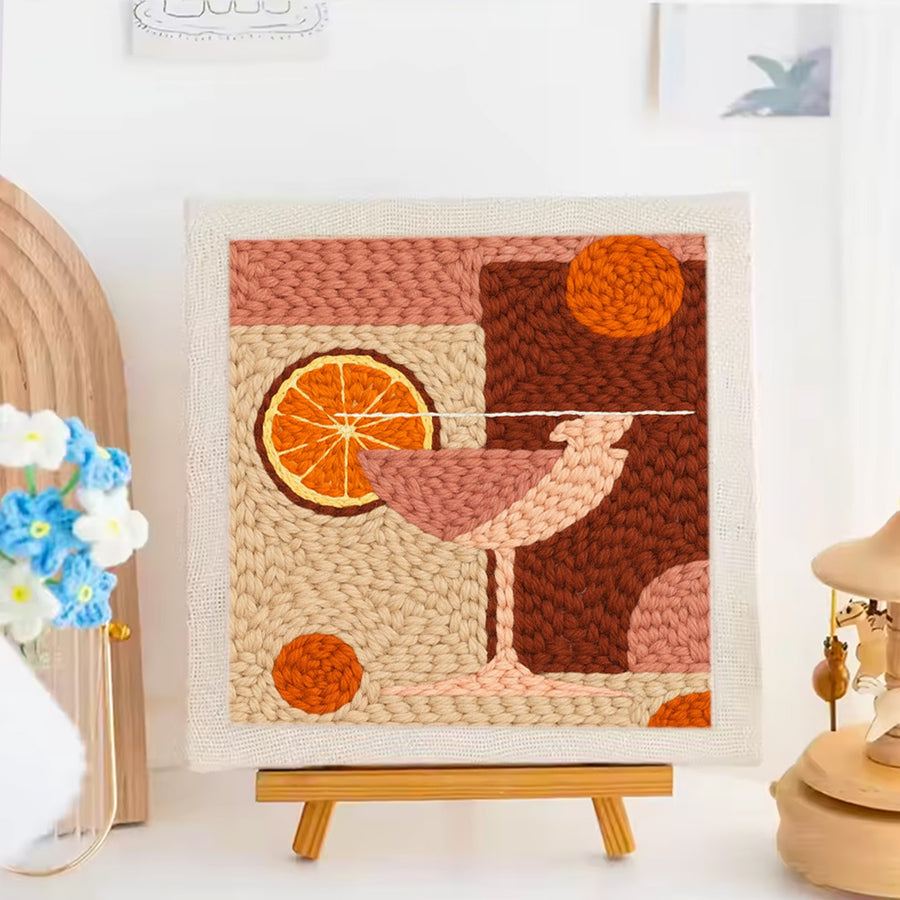 Pink Orange Liqueur Punch Needle Embroidery Kits