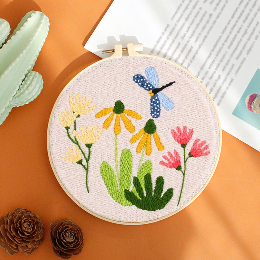 Flowers and Dragonflies Punch Needle Embroidery Kits