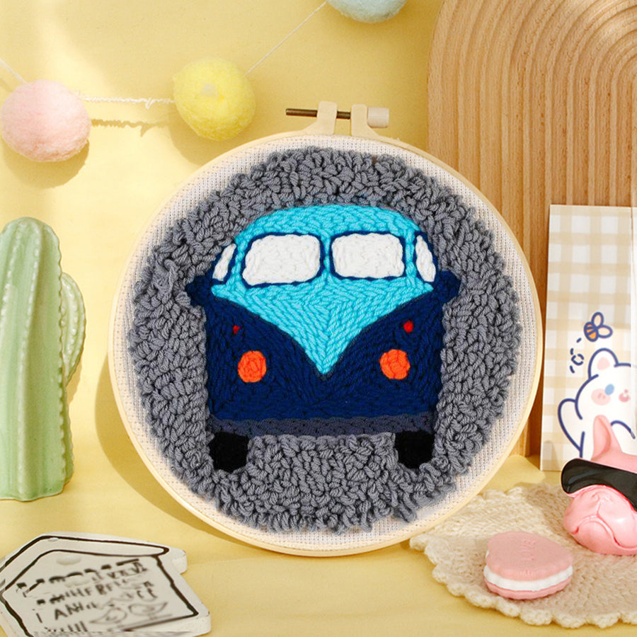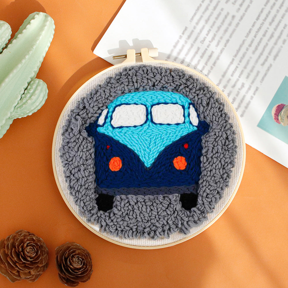 Blue Cars Punch Needle Embroidery Kits