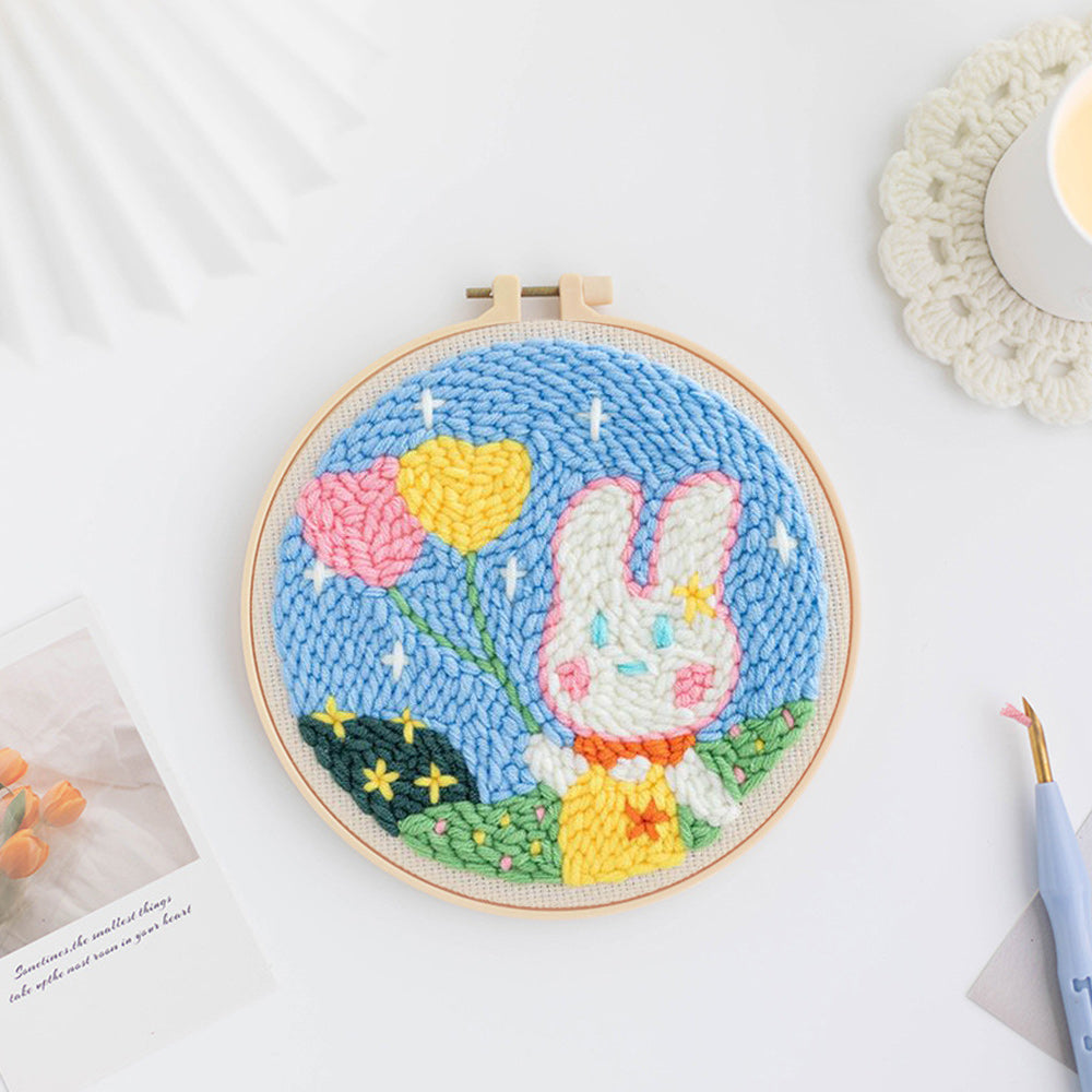 Love Balloon Rabbit Punch Needle Embroidery Kits
