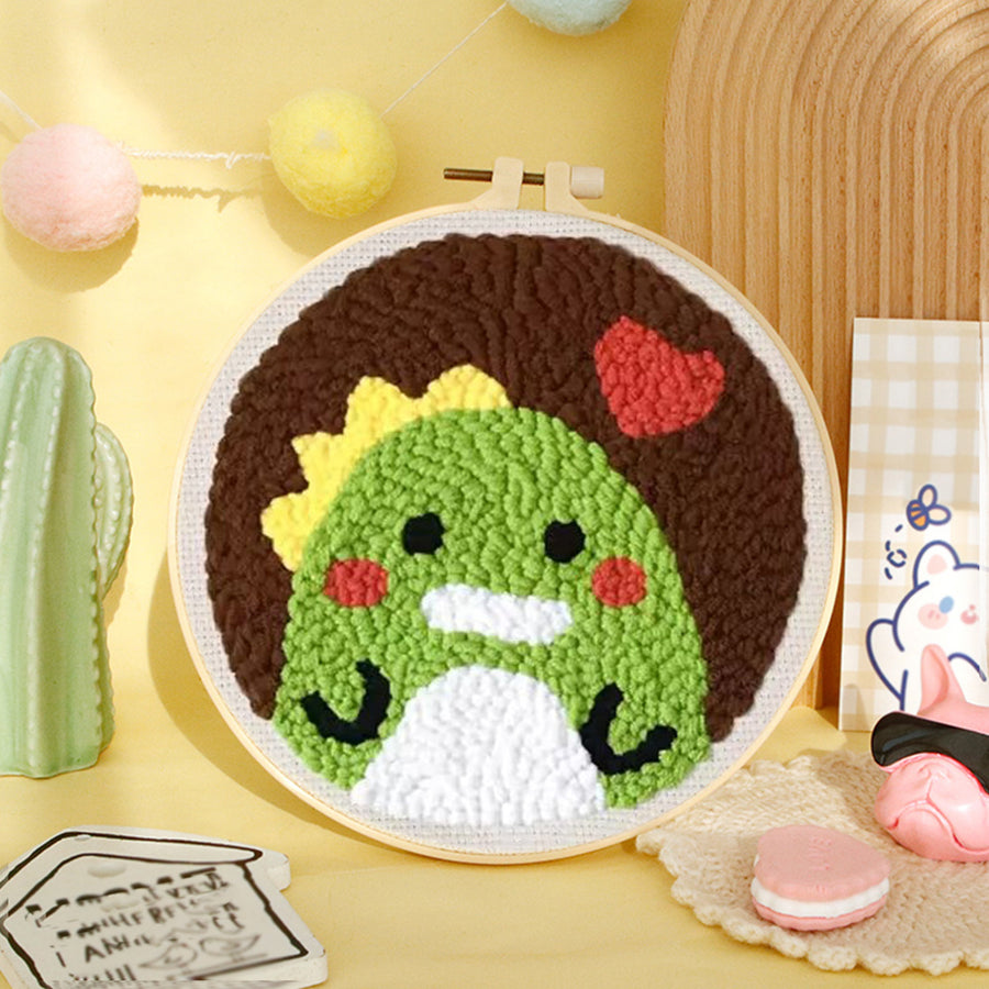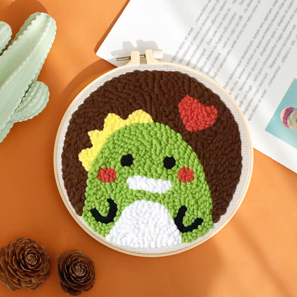 Little Green Dinosaur Punch Needle Embroidery Kits