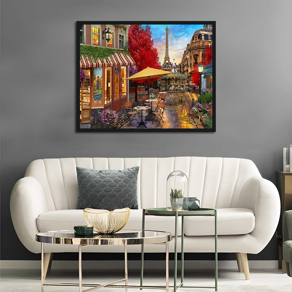 Paris Cafe Glows near Eiffel Tower Cross Stitch Kits