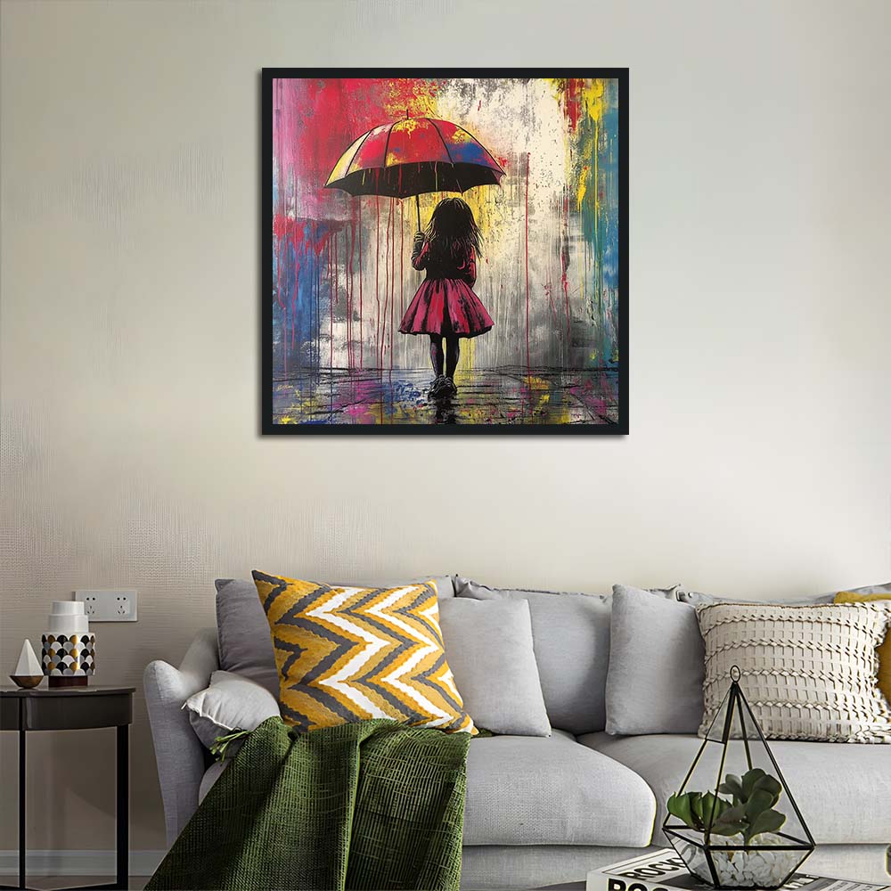 Graffiti Little Girl Holds Colorful Umbrella Cross Stitch Kits