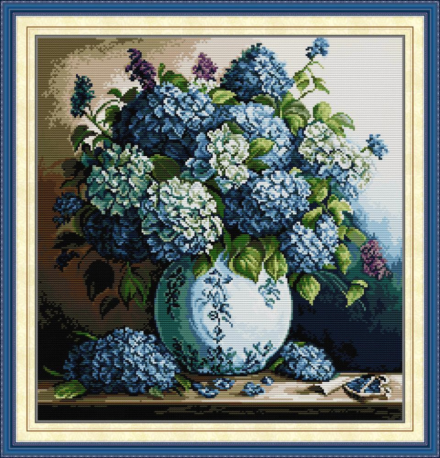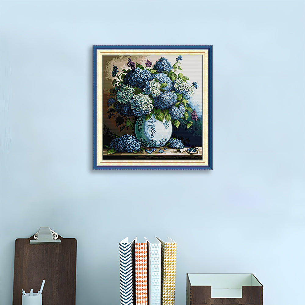 Bouquet of Blue Hydrangeas in A Vase Cross Stitch Kits