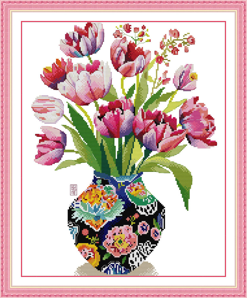 Pink Tulips in A Vase Cross Stitch Kits
