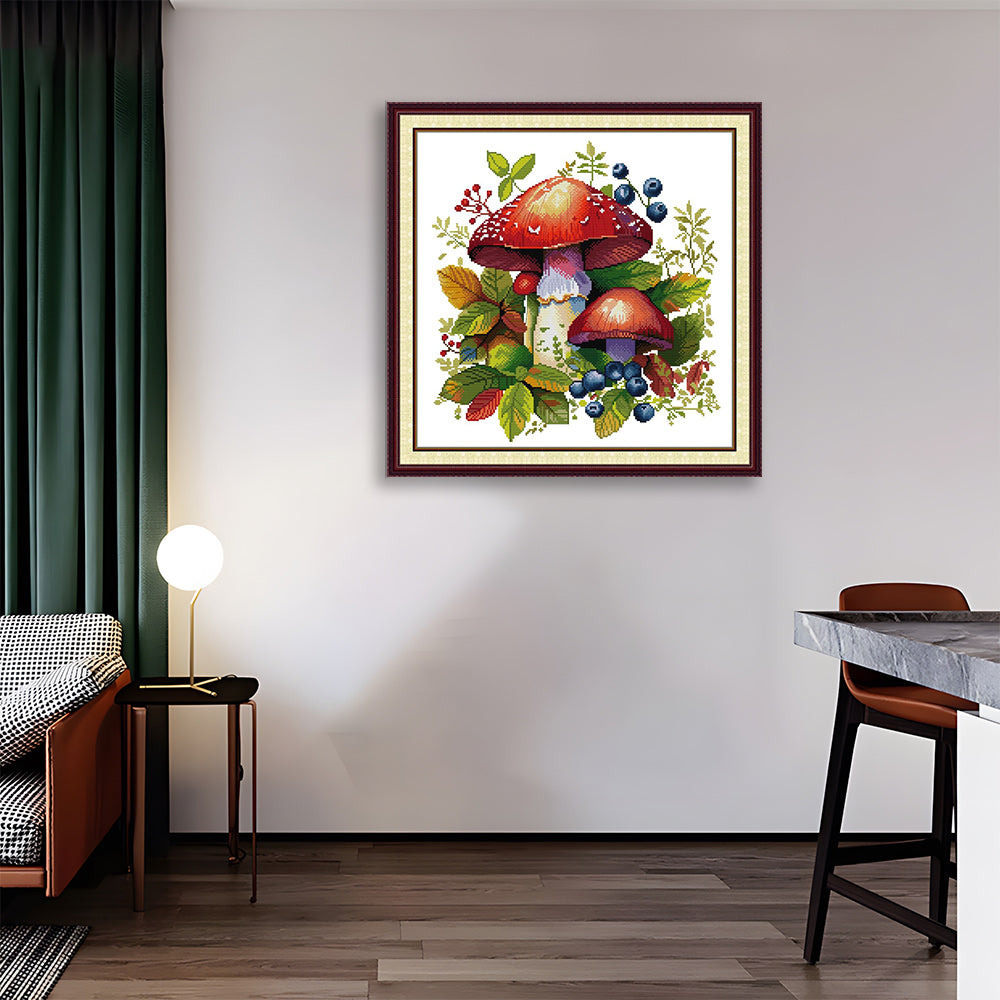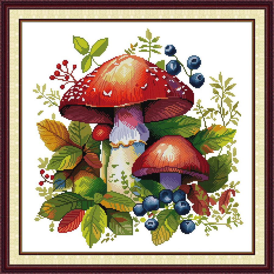 Red Mushrooms and Blueberries Cross Stitch Kits