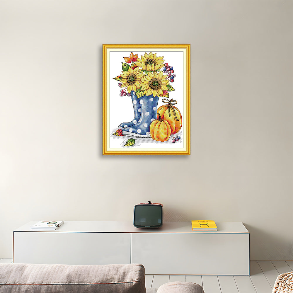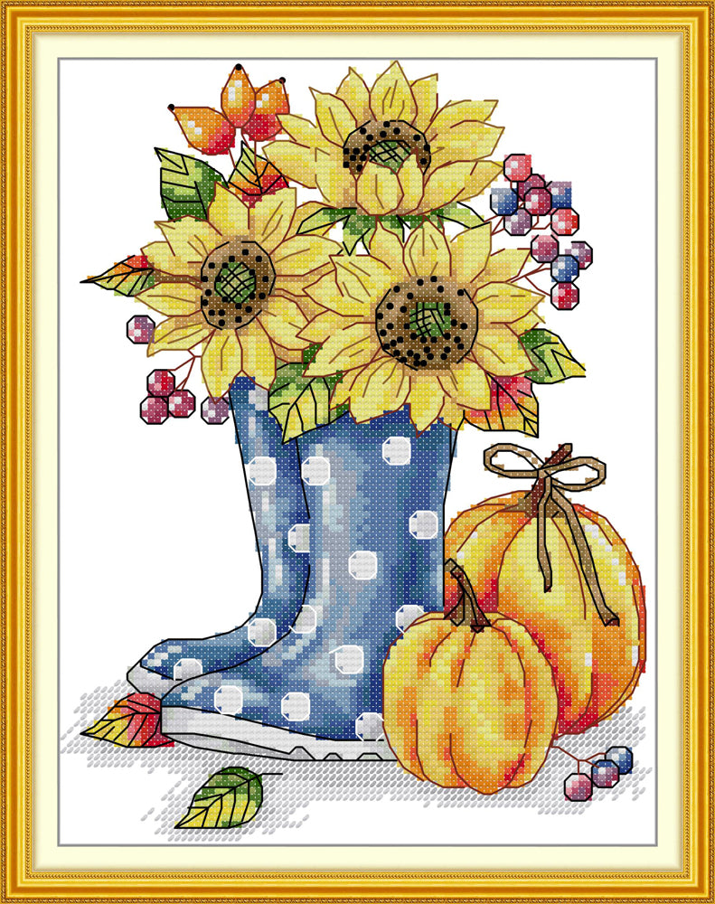 Sunflowers and Pumpkins in Boots Cross Stitch Kits