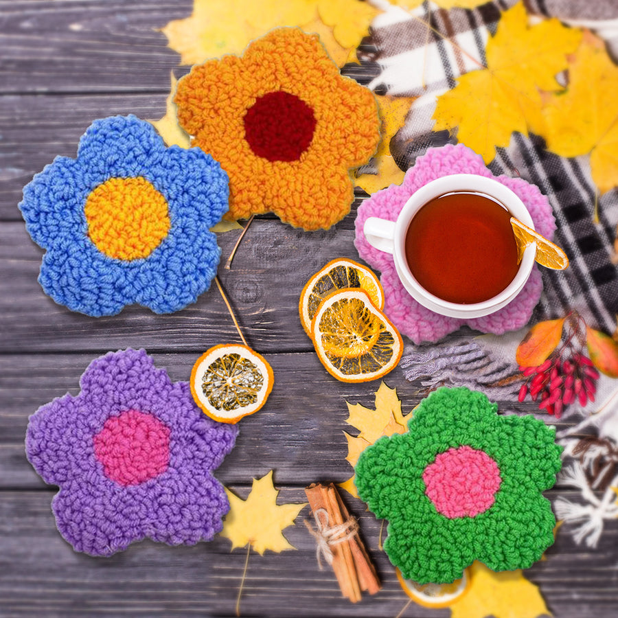 Colorful Little Flowers Punch Needle Coasters Kits 6 Pack