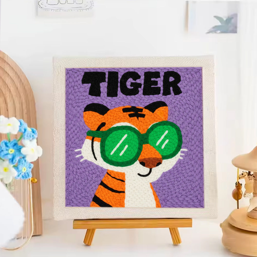 Green Sunglasses Tiger Punch Needle Embroidery Kits