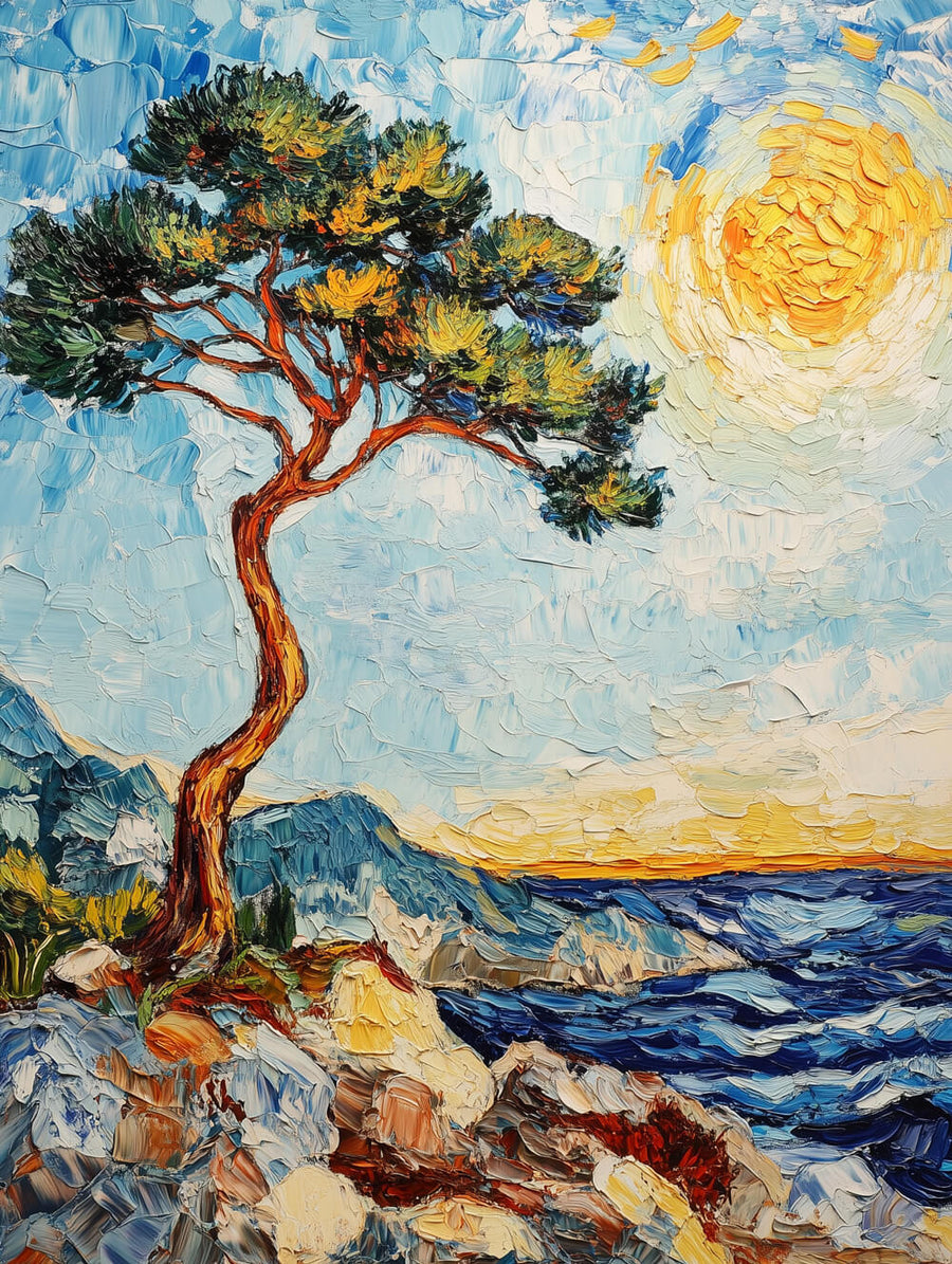 Lone Pine Faces Blue Sea Cross Stitch Kits