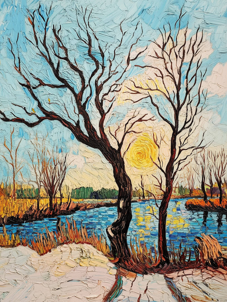 Leafless Trees Line Quiet River Cross Stitch Kits