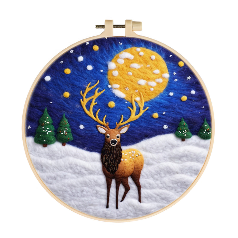 Elk Under Full Moon Wool Needle Felting Painting Kit
