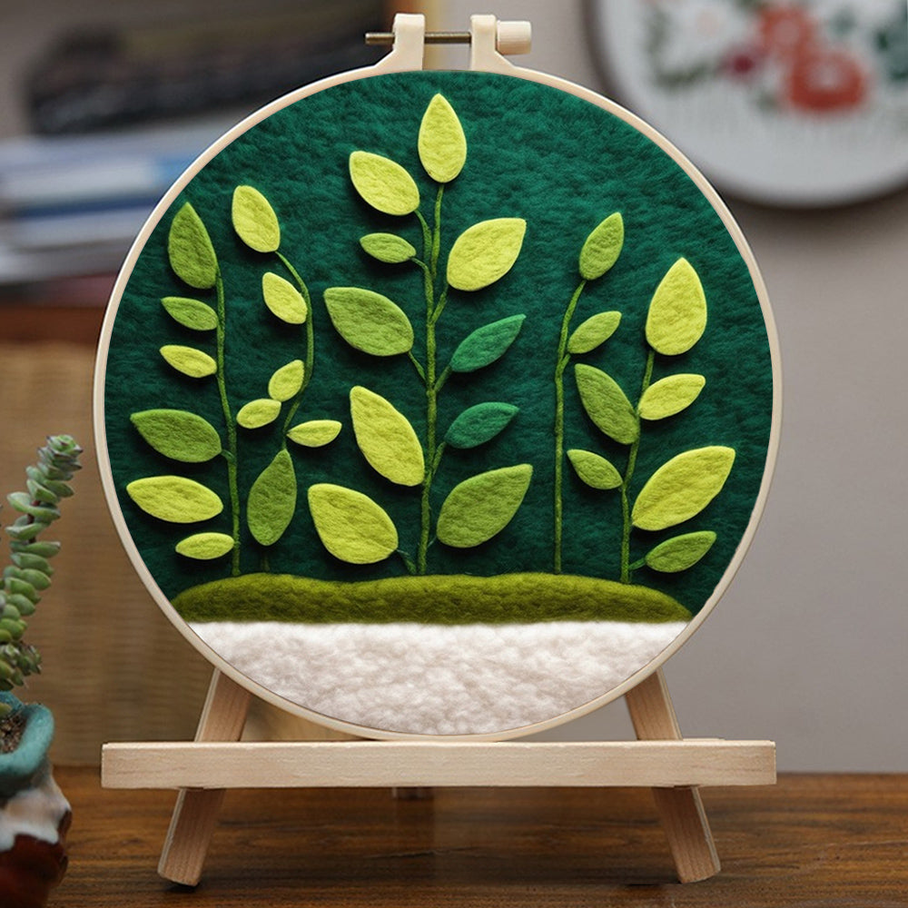 Green Leaf Plants Growing Upward Wool Needle Felting Painting Kit