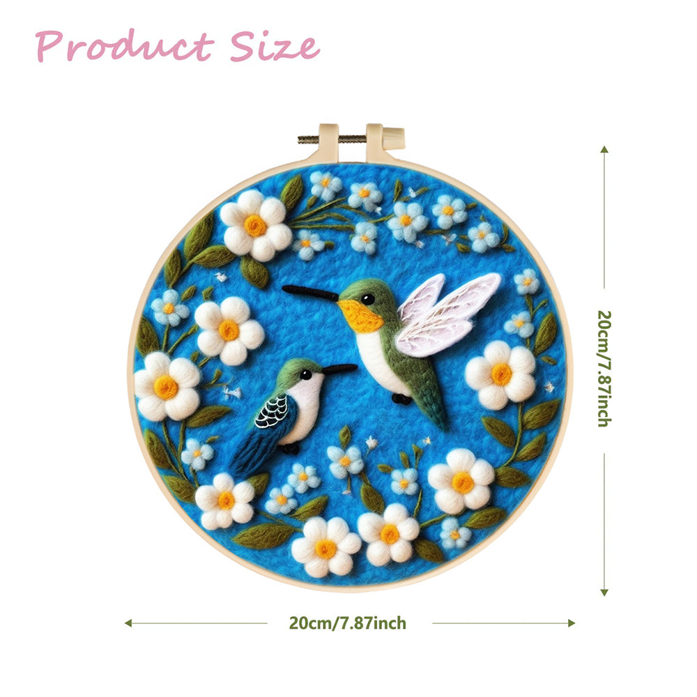 Hummingbirds Hover Among White Flowers Wool Needle Felting Painting Kit
