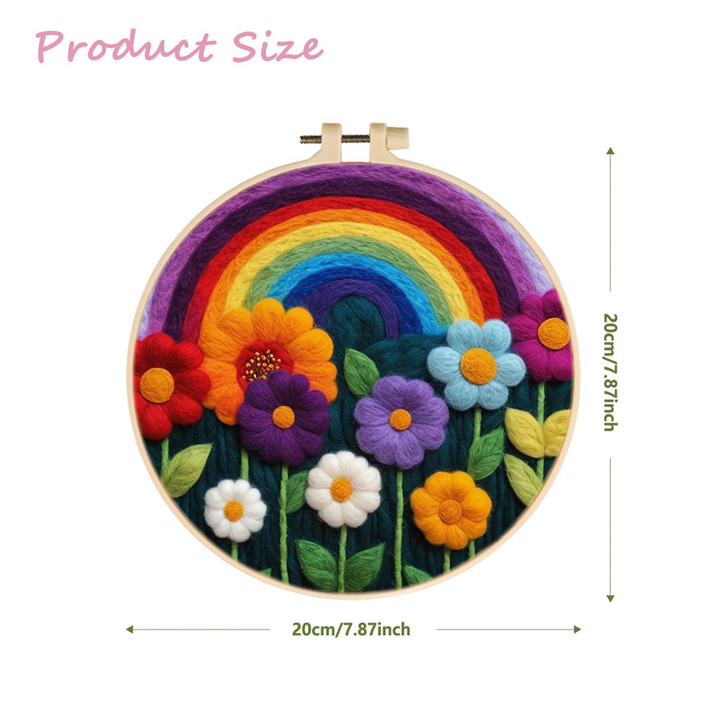 Rainbow Over Colorful Flowers Wool Needle Felting Painting Kit
