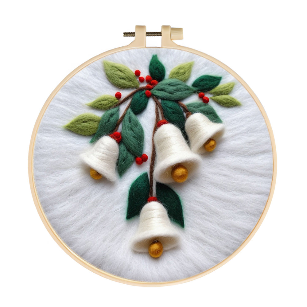 White Bells & Leaves Wool Needle Felting Painting Kit