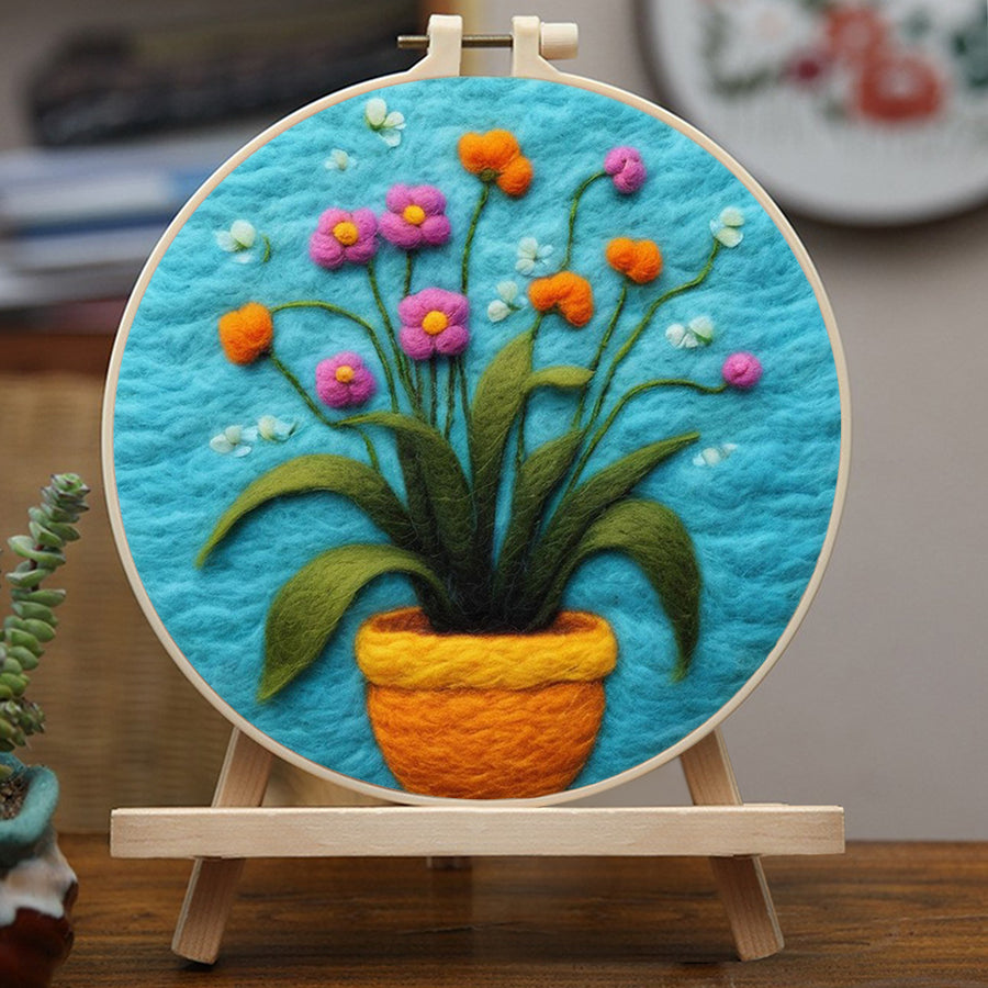 Vibrant Blue Flowers in Vase Wool Needle Felting Painting Kit