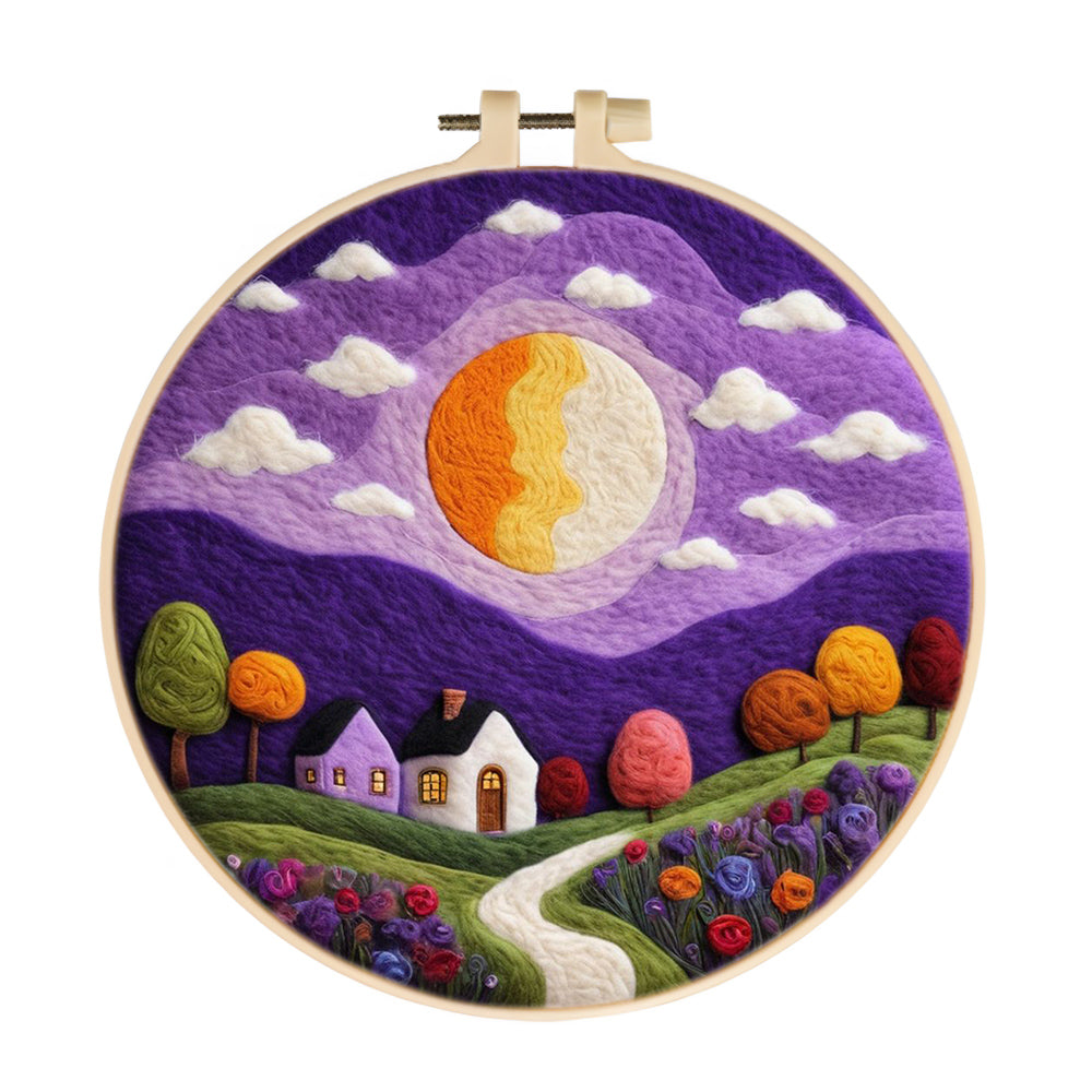 Bright Moon Over Purple House Wool Needle Felting Painting Kit