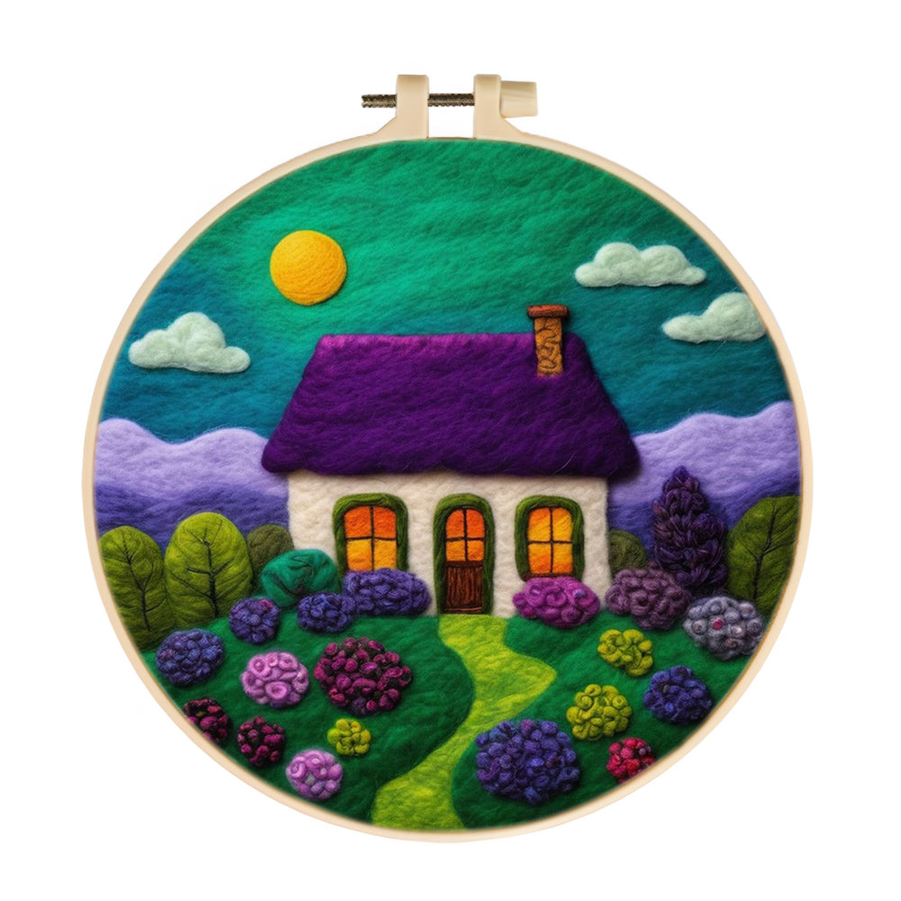 Purple House with Pathway and Flowers Wool Needle Felting Painting Kit