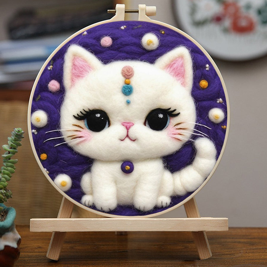 Cute Cat with Colorful Dots Wool Needle Felting Painting Kit