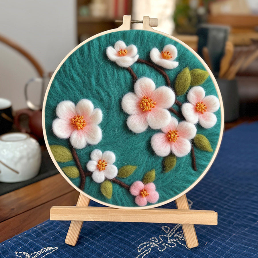 Pink Plum Blossom Branches Wool Needle Felting Painting Kit