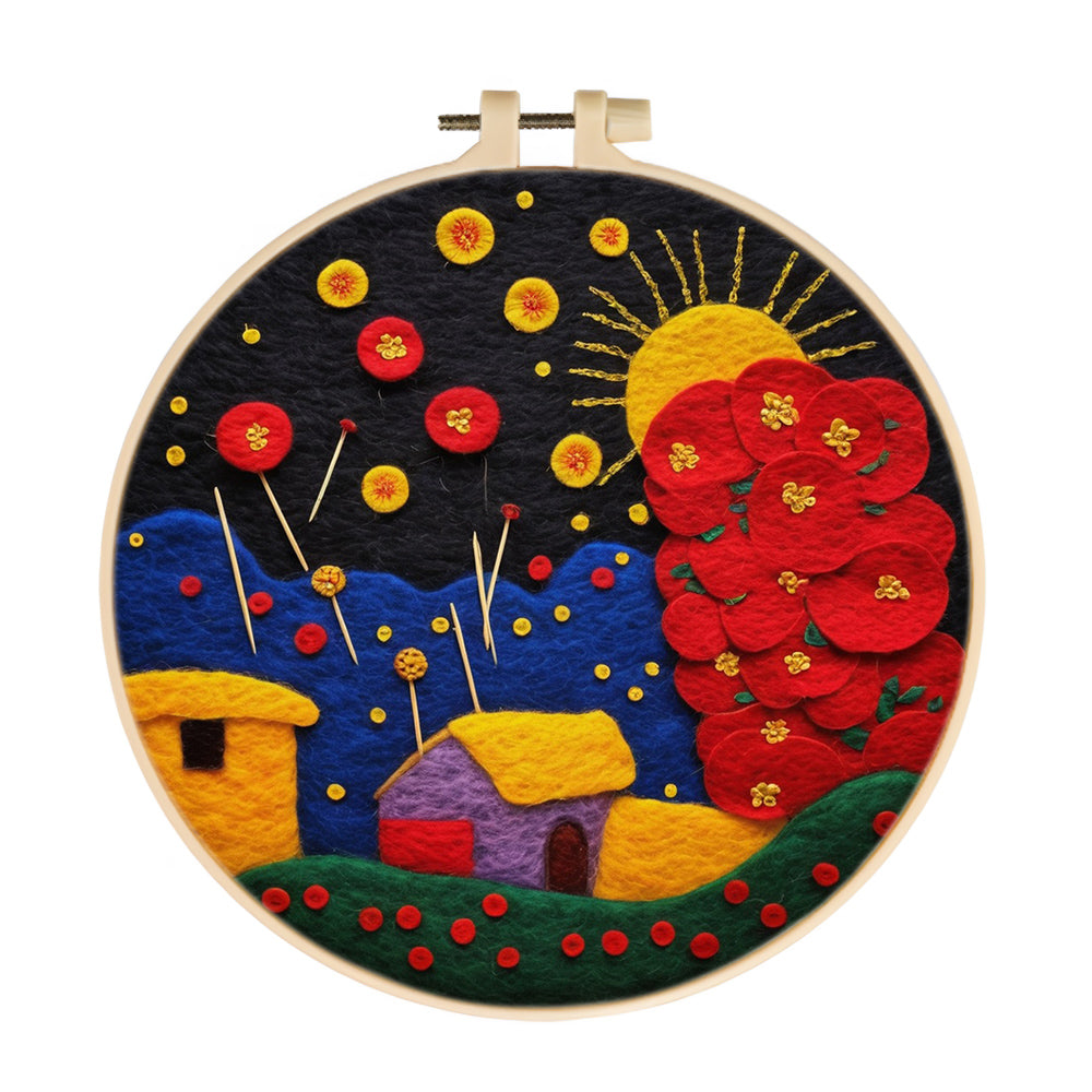 Colorful Sky, Mountains and Flowers Wool Needle Felting Painting Kit