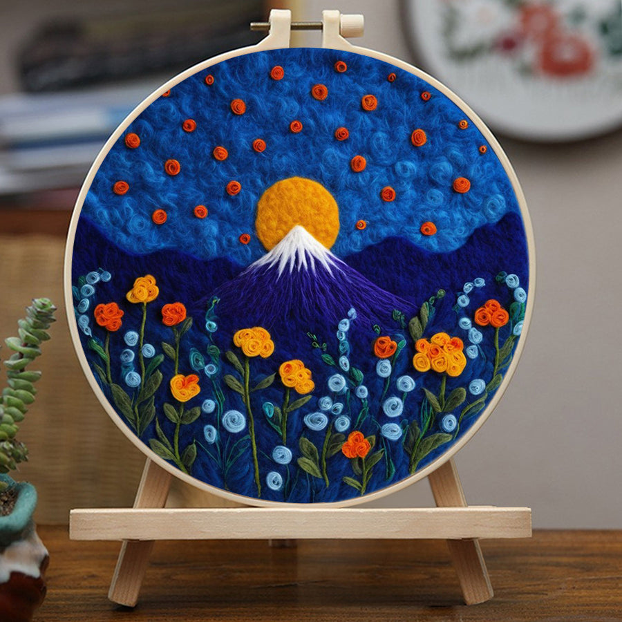 Flowers and Mountains at Night Wool Needle Felting Painting Kit