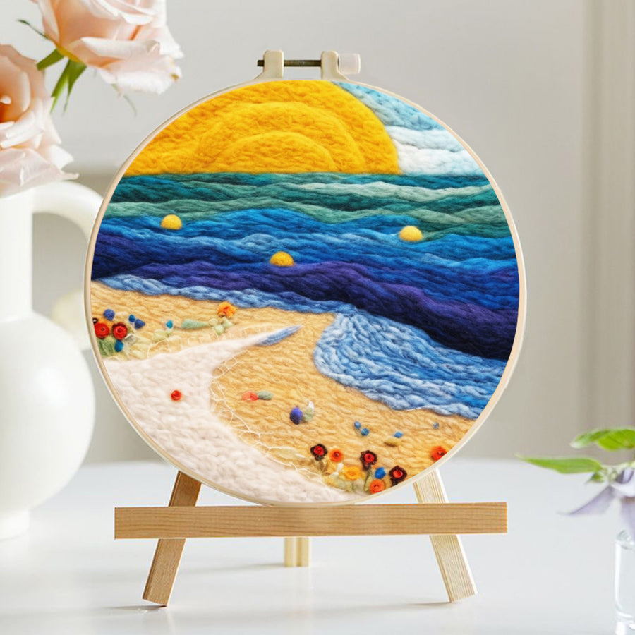 Blue Waves and Golden Sand Wool Needle Felting Painting Kit