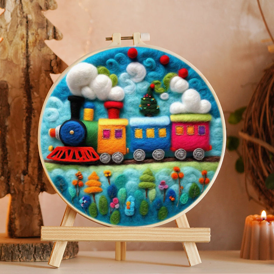 Colorful Carriage Train Wool Needle Felting Painting Kit
