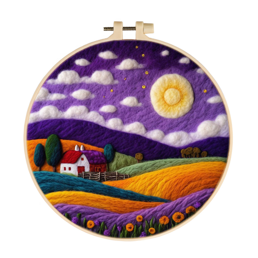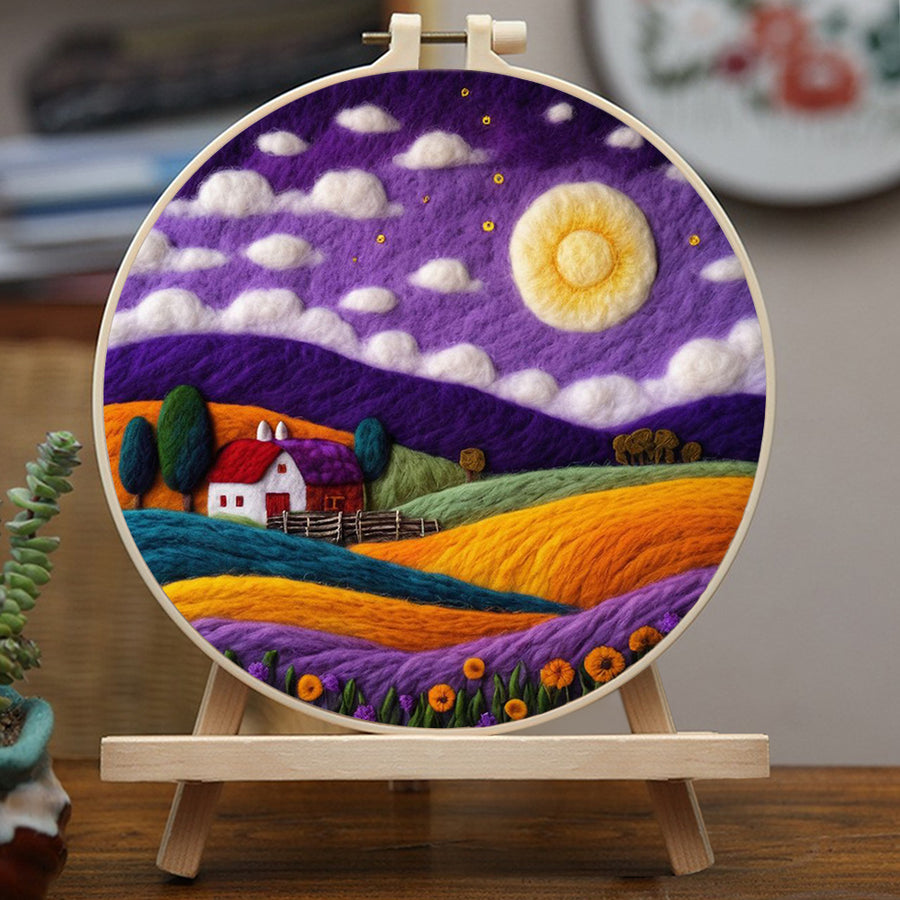 Peaceful Town Beneath Purple Clouds Wool Needle Felting Painting Kit