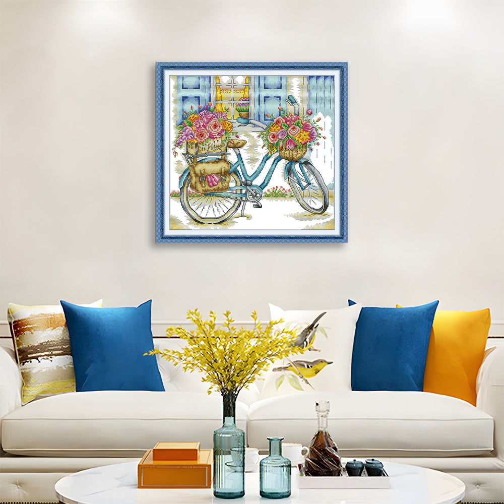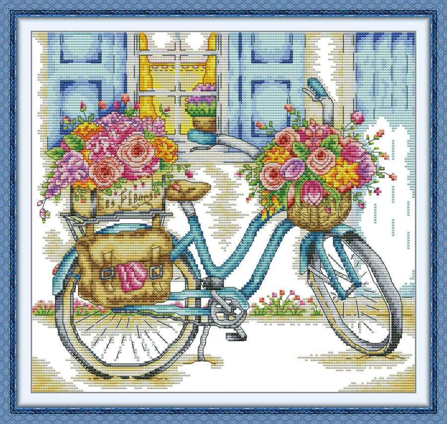 Bicycle Loaded with Flowers Cross Stitch Kits